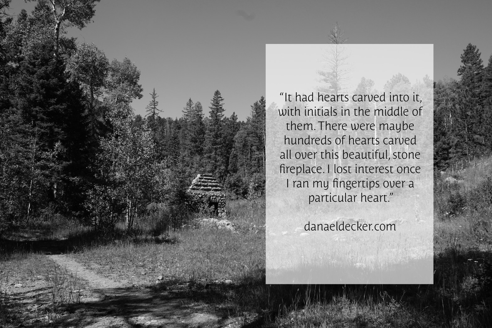 It had hearts carved into it, with initials in the middle of them. There were maybe hundreds of hearts carved all over this beautiful, stone fireplace. I lost interest once I ran my fingertips over a particular heart. I walked to the stream of cold mountain water that snaked its way through this serene meadow.